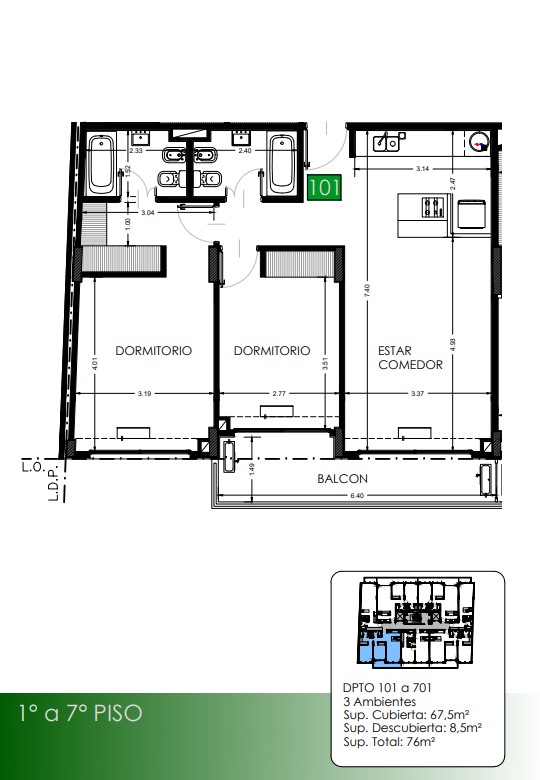 1° a 7° Piso Departamentos 101 a 701
