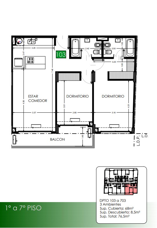 1° a 7° Piso Departamentos 103 a 703