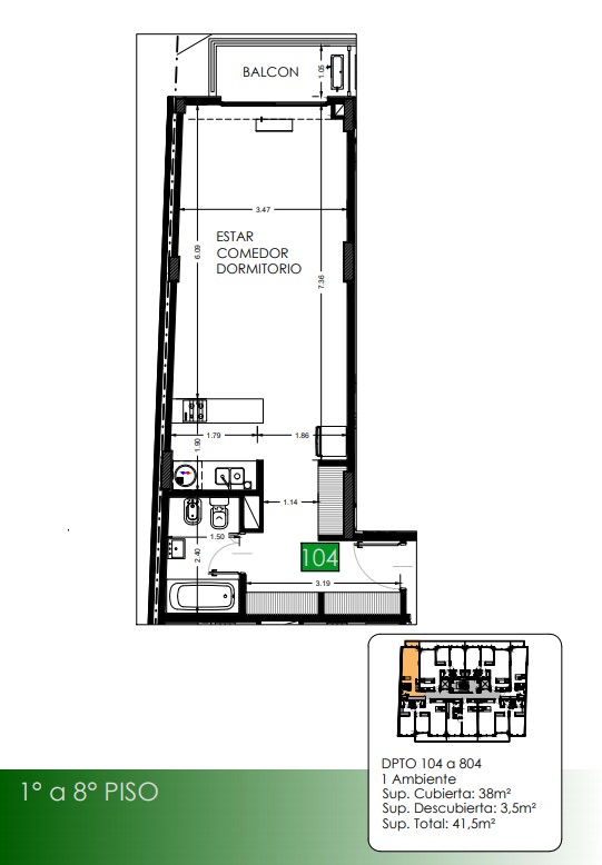 1° a 8° Piso Departamentos 104 a 804
