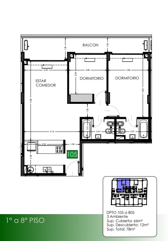1° a 8° Piso Departamentos 105 a 805
