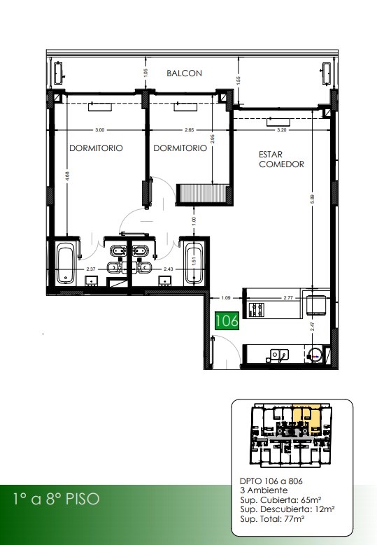 1° a 8° Piso Departamentos 106 a 806