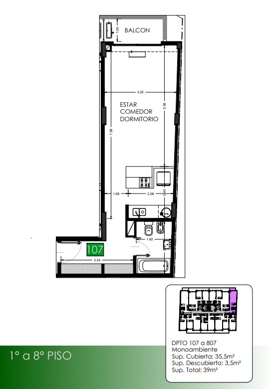 1° a 8° Piso Departamentos 107 a 807